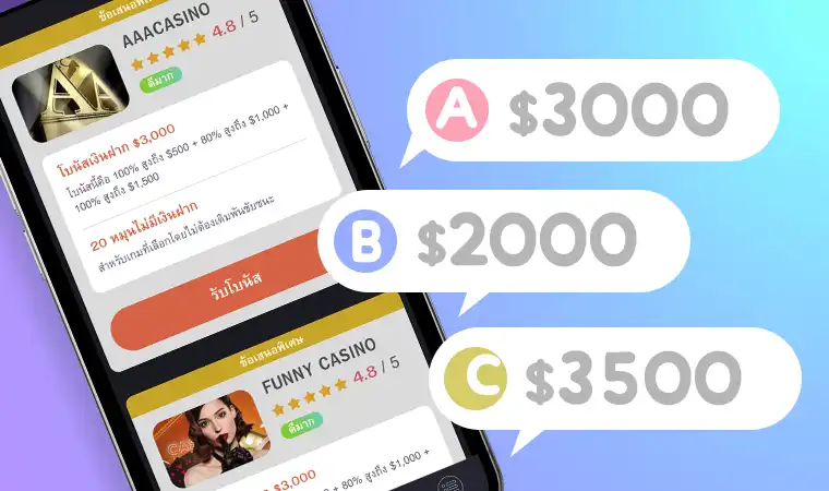 คุณสามารถค้นหาคาสิโนตามอันดับและรายละเอียดโบนัสที่เหมาะกับความต้องการของคุณ!
